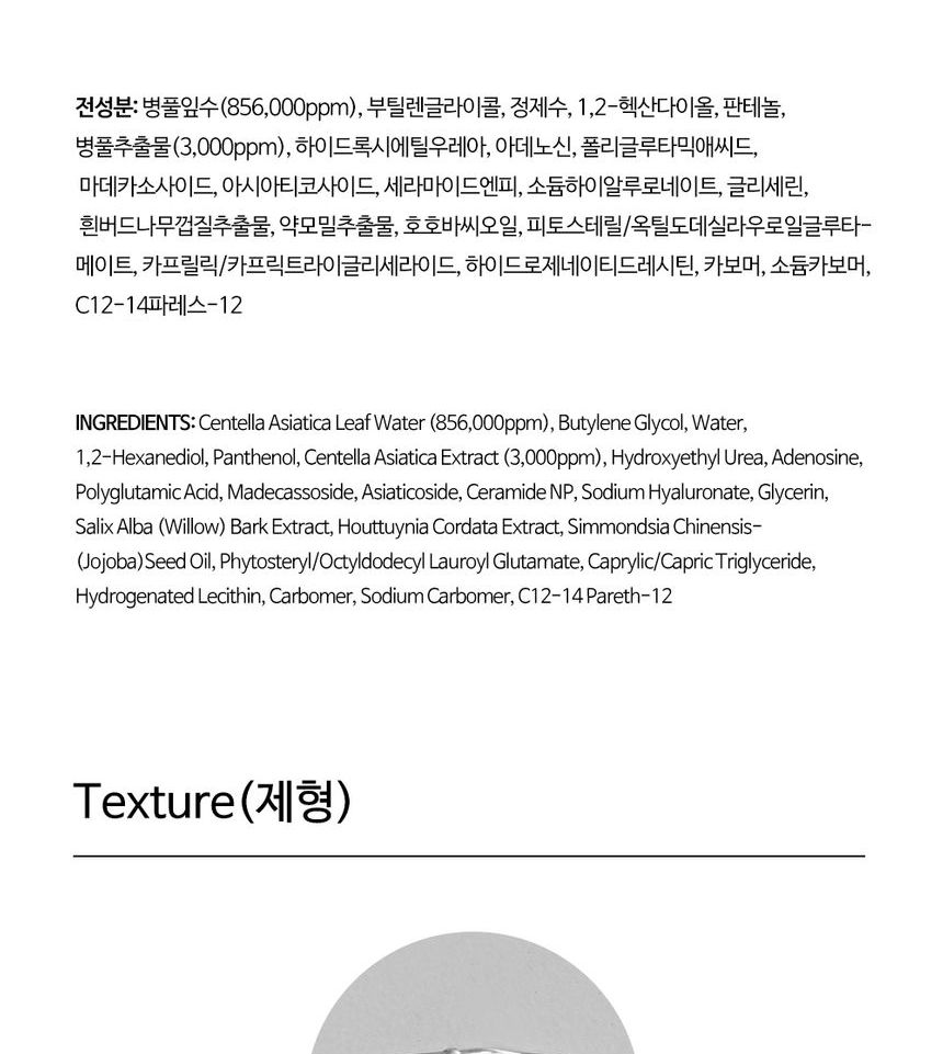 Centella asiatica foglia d'acqua (856.000 pm), glicole butilenico, acqua, 1,2-esanediolo, madicol, estratto di Centella asiatica (3,000ppm), idrossielico, idrossielico, adenosina, policlassina, madicassos, madenososfide, centella asiatica estratto (3.000ppm), idrossielico, idrossielico, adenosina, policlassina, madicassos, maDenol, centella asiatica estratto (3.000ppm), idrossielico, idrossielico, adenosina adenosina Asiaticoside, ceramide NP, ialuronato di sodio, glicerina, Salix alba (salice) Estratto di corteccia, estratto di houttuynia cordata, Simmondsia chinensis (jojoba) olio di seme, fenosteryl/octyldodecil lauroyl glutamato, capriccio di capriccio, sodosteryl, olio di figodecile/octyldodecil lauroyl glutammato, caprico caprico, sodosteryl, olio di metosteryl/octyldodecil lauroyl glutalato, caprico caprico, sodososteryl, sodosteryl/octyldodecil lauroyl glutammato, caprylic di caprica di caprica, sodosteryl/octyldodecil lauroyl Carbomer, C12-14 Pareth-12