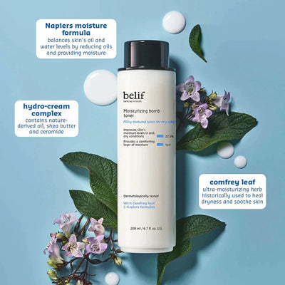 nato dallo stesso DNA della bomba idratante amata, a causa di una bomba di ritenuta, a livello emulsivo, a livello di emulsione, a livello di emulsione, a livello di emulsione. Gli ingredienti chiave, tra cui le formule di Napiers di Comfrey Leaf e Belif, si uniscono per mantenere la pelle paffuta e giovanile, promuovono il rinnovamento e mantengono l'equilibrio ideale per olio d'acqua. Libero da olio minerale, fragranze sintetiche, colori sintetici, conservanti sintetici e ingredienti derivati dagli animali, il toner di bomba idratante di Belif è il tuo go-to per la pelle idratata ed equilibrata.