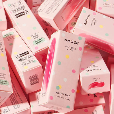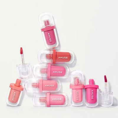 Presentazione della tinta di Jel-Fit Amuse, con otto diverse tonalità; Dove il colore vibrante incontra una luminosità di lunga durata per le labbra. Sperimenta la magia di questa formula duratura di 12 ore che vanta non solo una tonalità limpida e luminosa, ma anche un'umidità rivitalizzante che mantiene le labbra vivaci tutto il giorno.