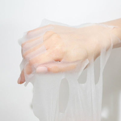 - Posiziona attentamente la maschera sul viso, evitando le aree per gli occhi e la bocca e rimuovi la pelle e la pelle in mesh sulla pelle da fare per la pelle e si assorbimento.