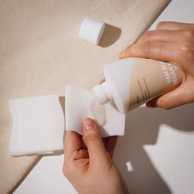 - Prendi una quantità adeguata su un cuscinetto di cotone o nei palmi e la pelle di quando è nutrata di quando si applicano la pelle. Sottoponi il toner 2-3 volte e lascialo assorbire.