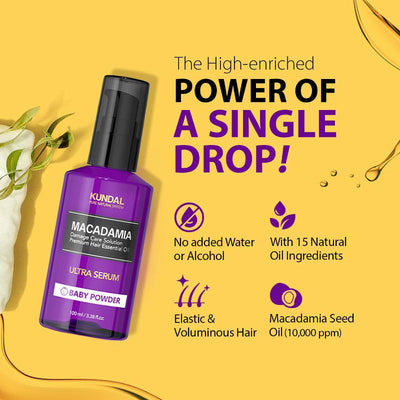 Il siero Ultra Hair Kundal Macadamia è un siero puro altamente concentrato che non contiene acqua o alcol. Il siero Ultra Hair di Kundal Macadamia contiene 10.000 ppm di macadamia e 15 oli naturali derivati dalle piante ( olio di argan, olio di semi di macadamia, olio di avocado, olio di cocco e altro!) per moisturizzare e nutrire i capelli opachi, britannici e secchi.