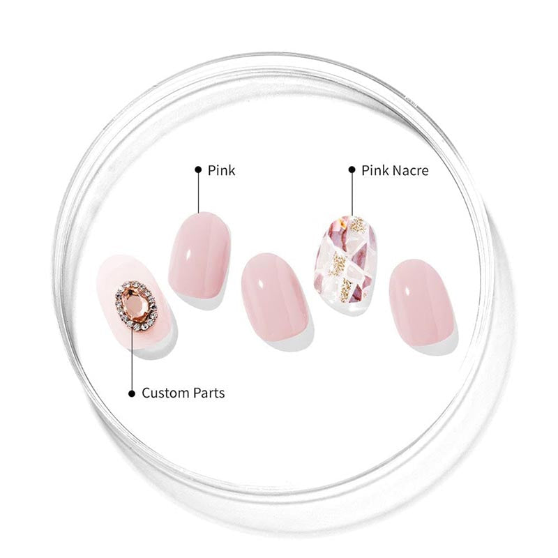 una manicure premium come elegante e senza tempo come il suo omonimo. Caratteristiche gel rosa blush, decalcomanie di perle luminose e una gemma incrostata con diamante scintillante.