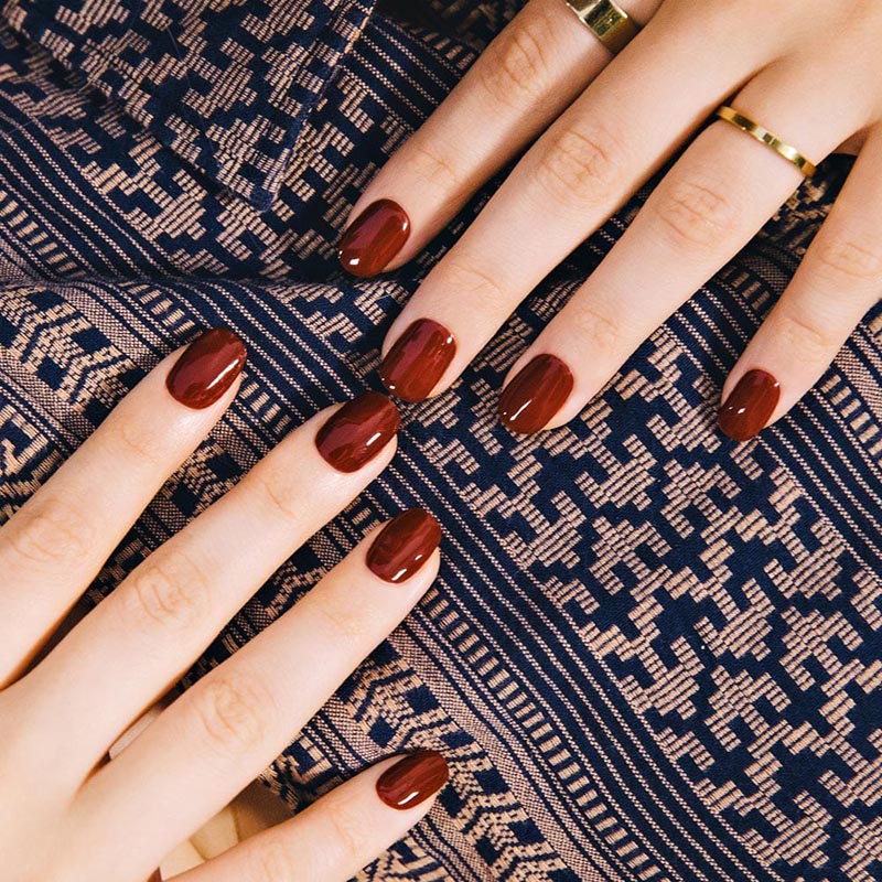 Sfriggi il tuo gioco unghie con questo look caldo! Con un gel di peperoncino marrone rosso che è perfetto per l'autunno.