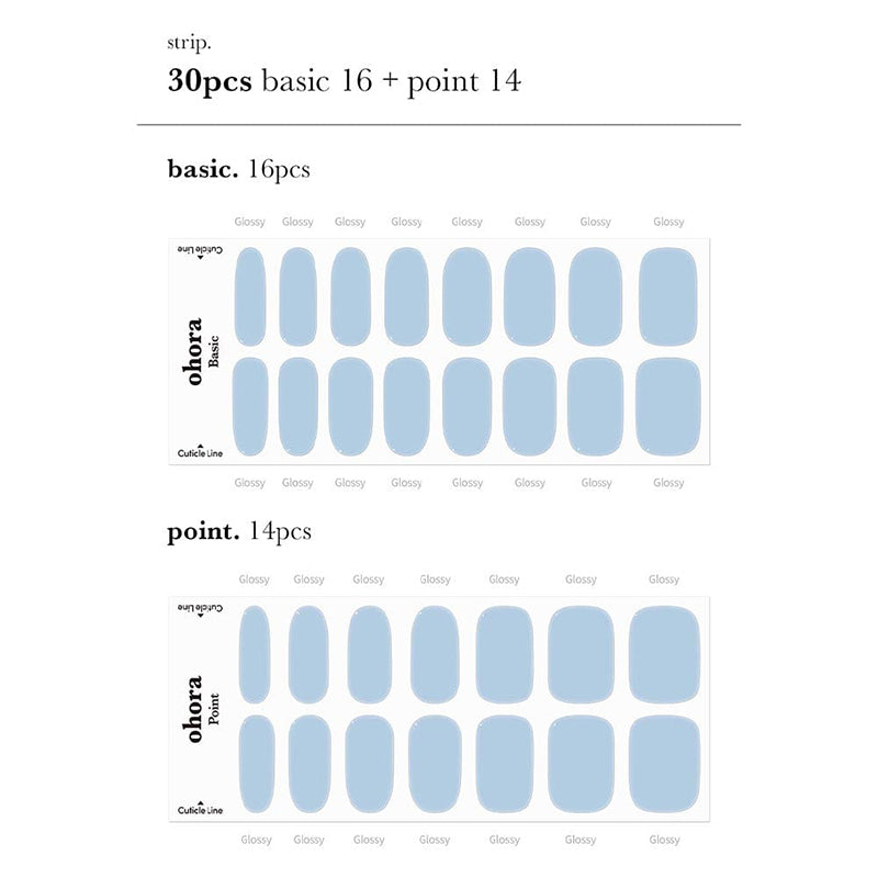 - 30 strisce per unghie (16 basi e 14 accenti) in 15 dimensioni diverse