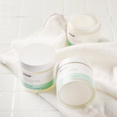 The RNW der. Ton pad di peeling dei pori lievi sono cuscinetti a doppia faccia che contiene acido salicilico e 0,5% di BHA per rimuovere le cellule e il sebo della pelle morti, nonché l'estratto di Houttuynia cordata e l'estratto di Centella asiatica per consegnare l'umidità rilassante dopo l'exfoliazione.